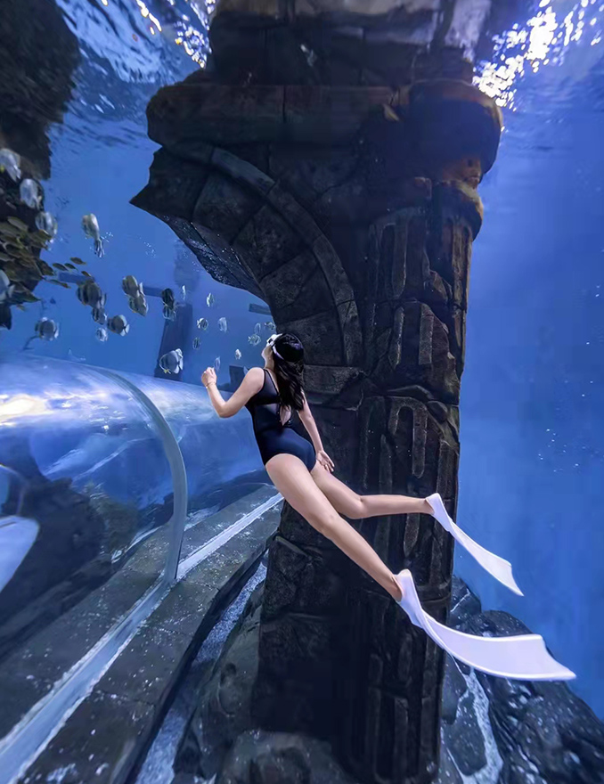 哈爾濱波塞冬全景水下隧道,擁有全國僅有的以展現充滿傳奇色彩的海神之戰為基礎的巨幕海底世界,全世界獨一無二,面向全國教練團隊開放合作,水肺,自由潛,美人魚,水下拍攝,提供專業水下攝影場地。